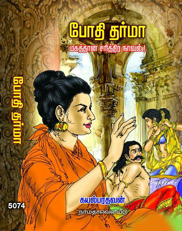 போதிதர்மாவைப் பற்றிய இந்த மகத்தான சரித்திர நாவல், நான்கு பாகங்களைக் கொண்டது. முடிச்சுக்கு மேல் முடிச்சாகப் போட்டு, ஒரு துப்பறியும் கதையைப் போல் இந்த சரித்திர நாவலை வளர்த்துச் சென்று இறுதி அத்தியாயங்களில் ஆசிரியர் முடிச்சை அவிழ்த்து, புதிரை விடுவிப்பது அருமை